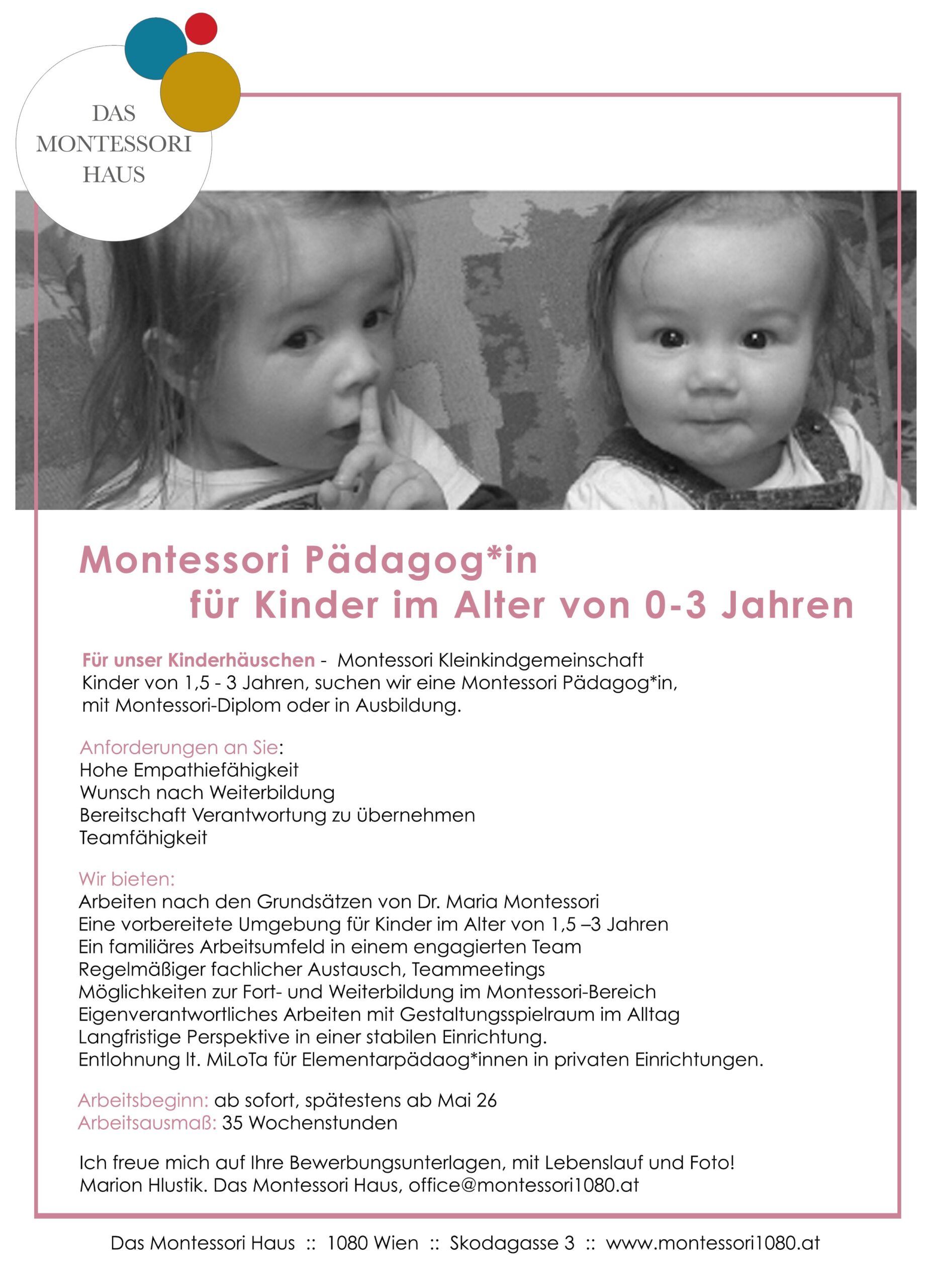 1170 Wien - Montessori Pädagog:in 0-3 Jahre (TZ/VZ)